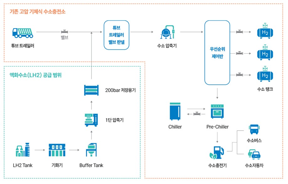 수소충전소는 크게 수소공급방식에 따라 제조식(On-site) 방식과 저장식(Off-site) 방식이 주로 설치되고 있습니다.