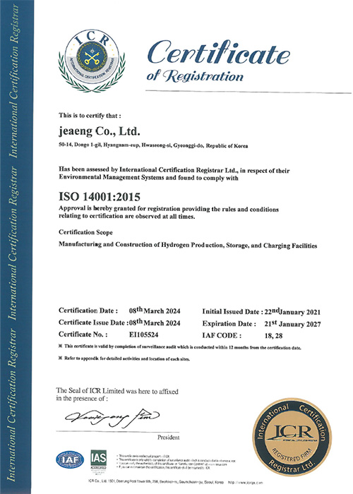 - ISO 14001:2015 의 요구 사항에 의거하여 환경 경영 시스템을 구축하고 유지한다.